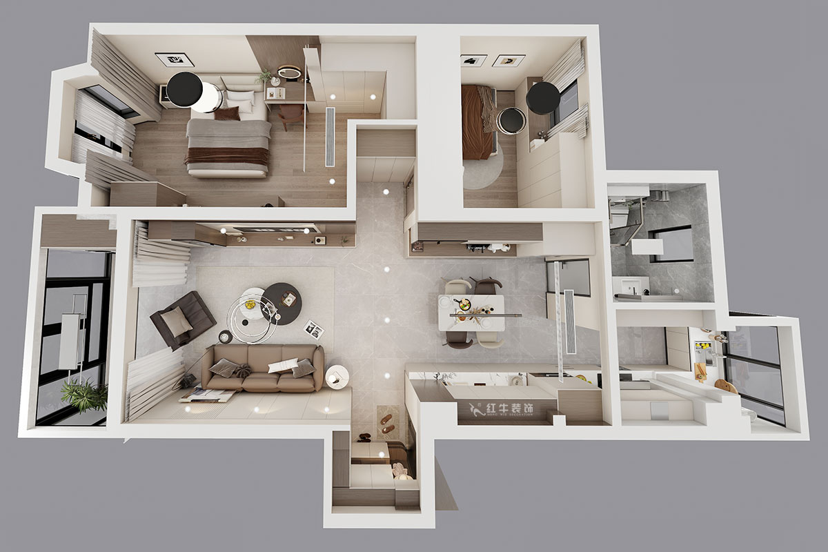 蔣?。汩坷?-2-902-100㎡-現(xiàn)代簡約風格|2室2廳1衛(wèi)|老房裝修|定制家|全包14萬|00_04鳥瞰圖