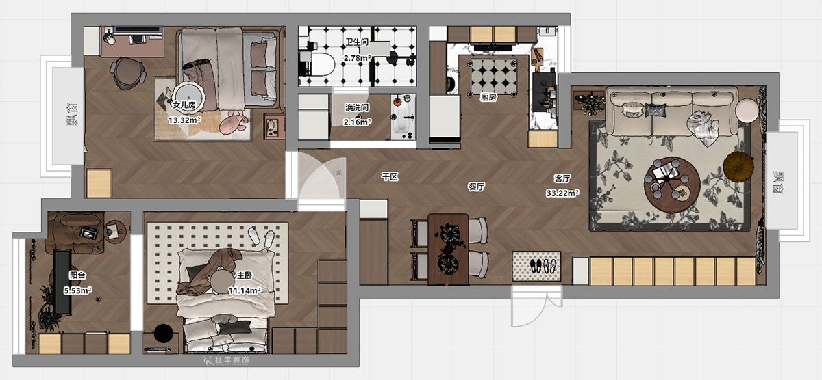 設(shè)計戶型:90㎡|2室2廳1衛(wèi)