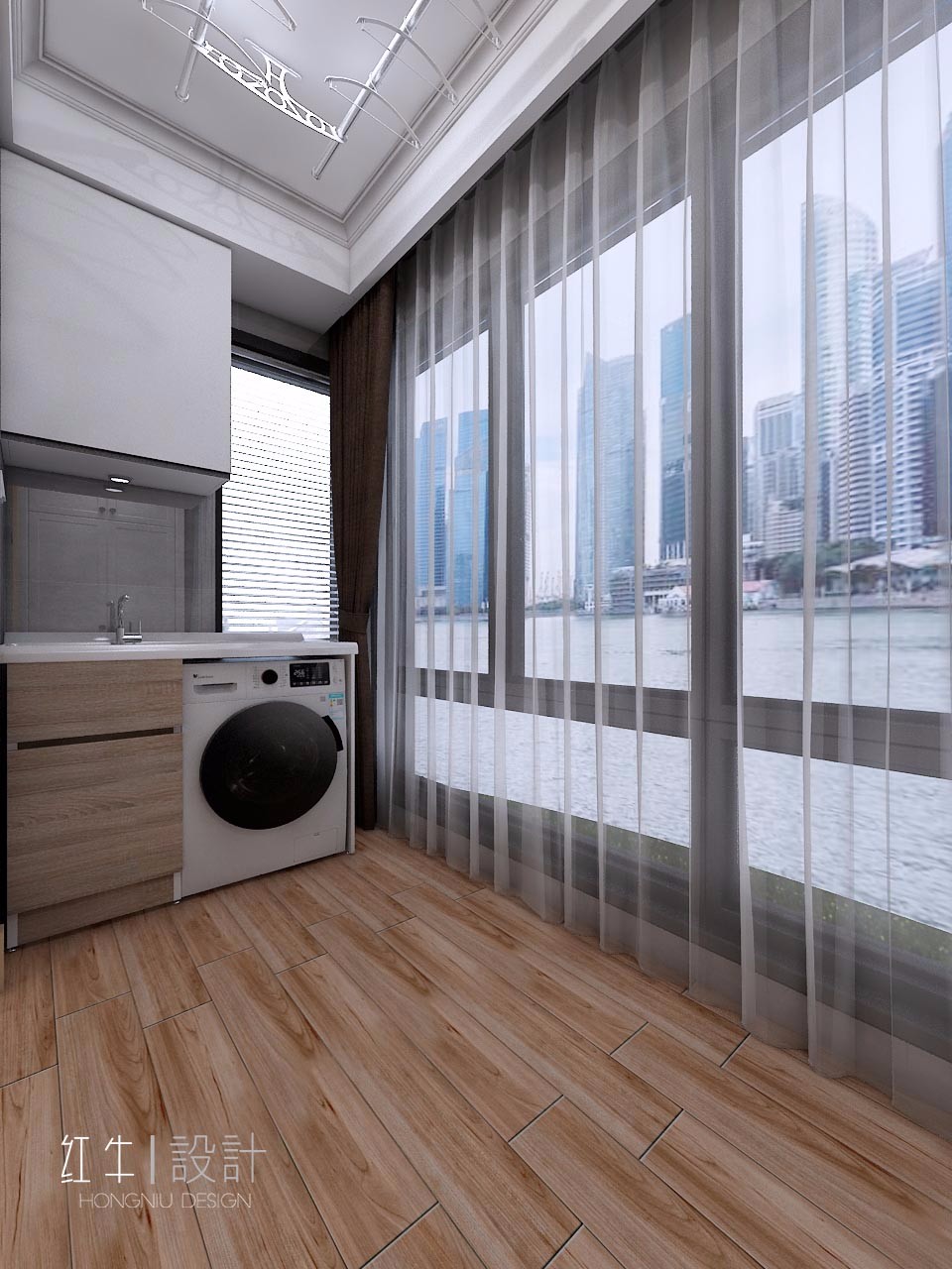 洗衣機(jī)放在陽(yáng)臺(tái),洗衣晾衣一氣呵成,不用為了晾衣服跑來(lái)跑去。木質(zhì)地板很有溫馨質(zhì)感。