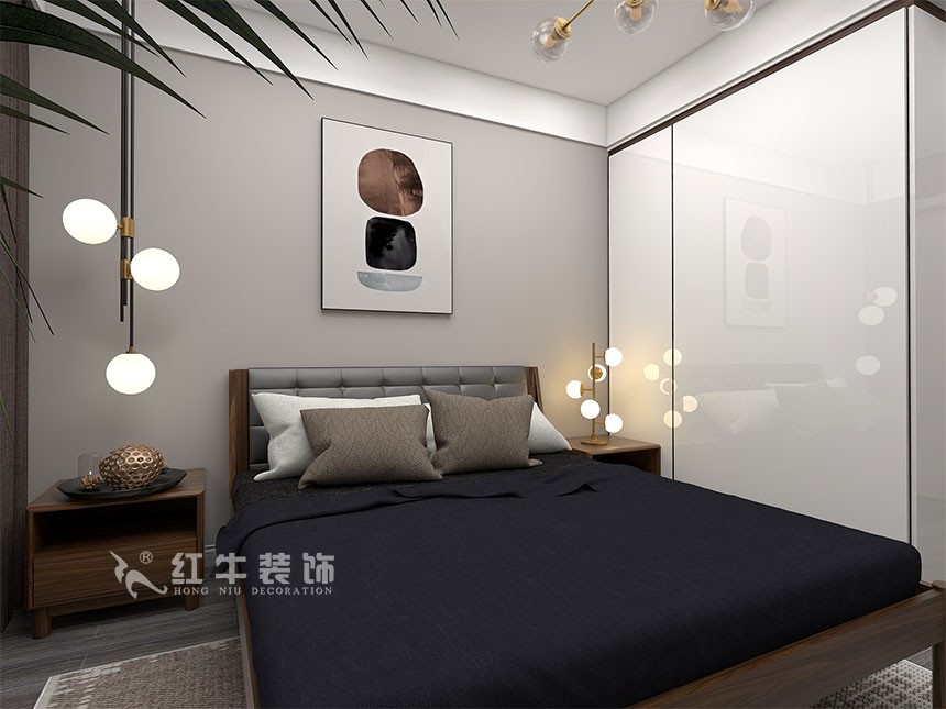客餐廳色調(diào)統(tǒng)一又不失精致,電視背景墻沒有過多的華麗修飾,給空間本身一個(gè)開拓、延展性,給居住者一個(gè)慵懶、明快的起居環(huán)境。主臥次臥,依靠現(xiàn)代風(fēng)格家具本身的線條感,搭配同樣風(fēng)格的裝飾畫,給人以休閑自在的視覺感受。書房是辦公空間,臨窗處以整面墻的衣柜來做處理,搭配榻榻米設(shè)計(jì),給了本就不大的空間一個(gè)視覺的開放性,心情也自然就舒緩很多。