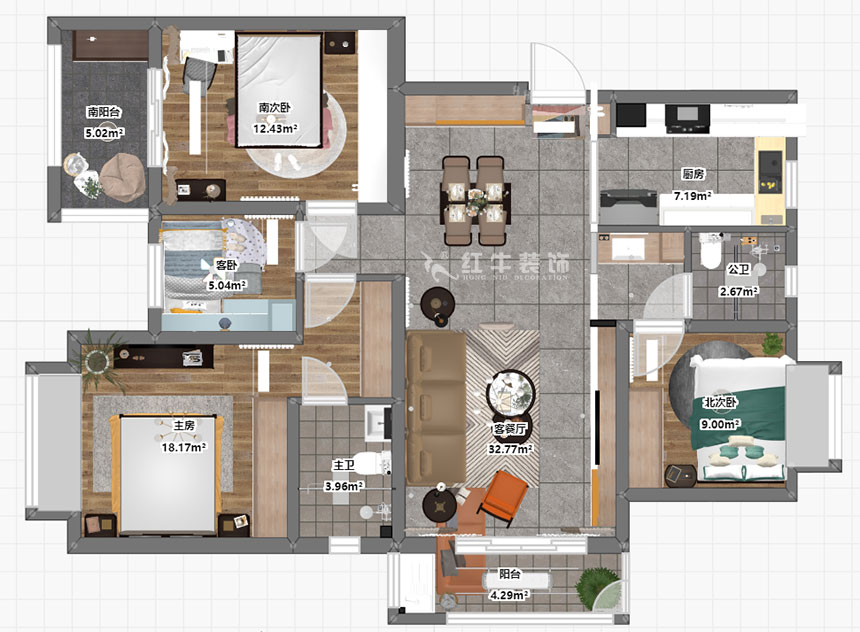 蔣?。薪诲\蘭薈-130㎡-現(xiàn)代簡約風(fēng)格|4室2廳2衛(wèi)|新房裝修|定制家¥165462|全包17萬|00_04鳥瞰圖